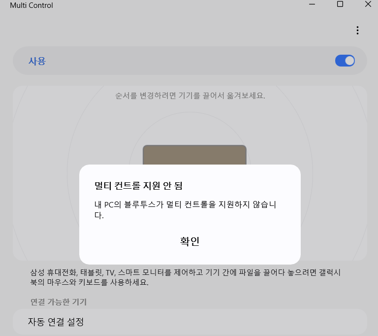 멀티컨트롤은 삼성노트북에서만 설치할 수 있어서(삼성이라고 다되는 것도 아님)