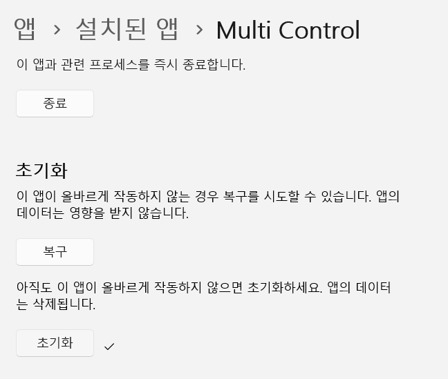 복구도 눌러봤는데 효과없었. 초기화만 눌러도 됐음